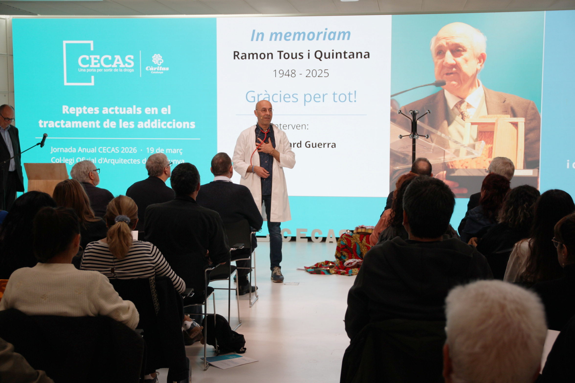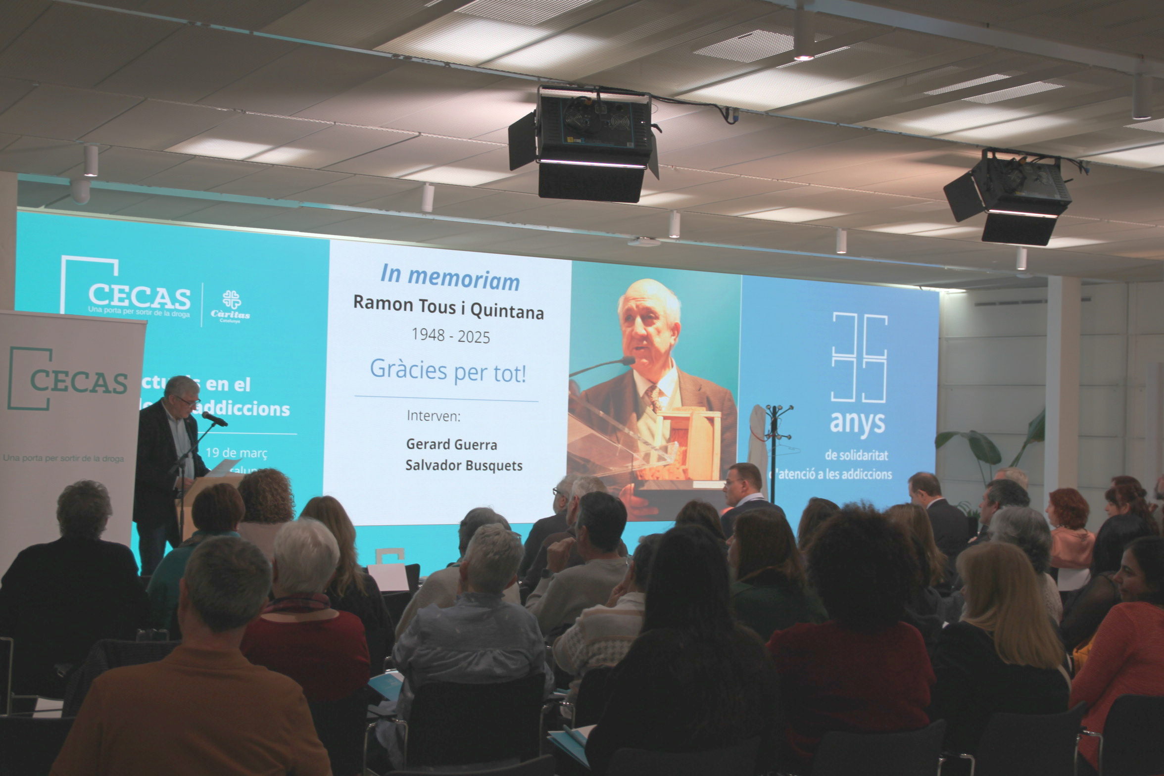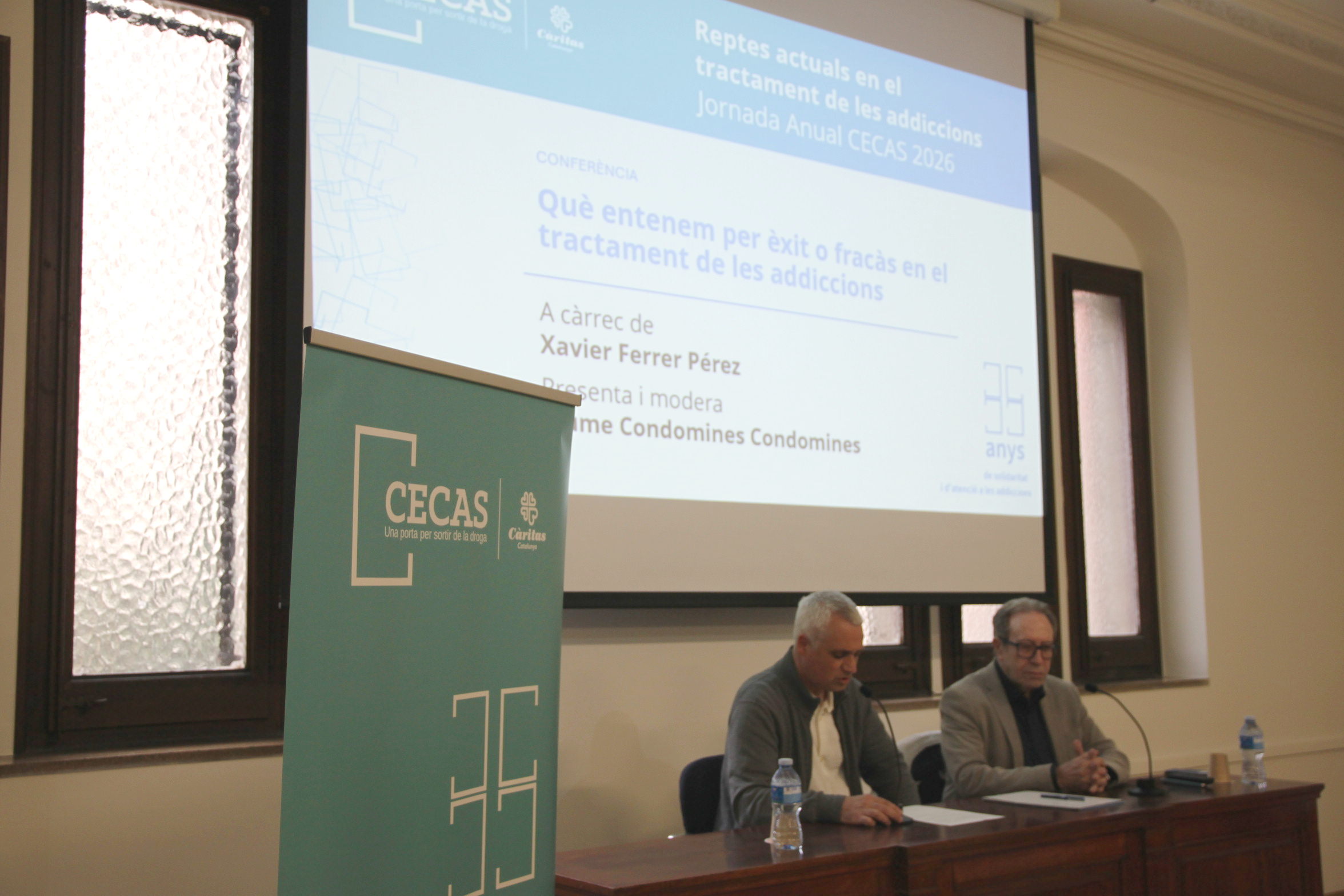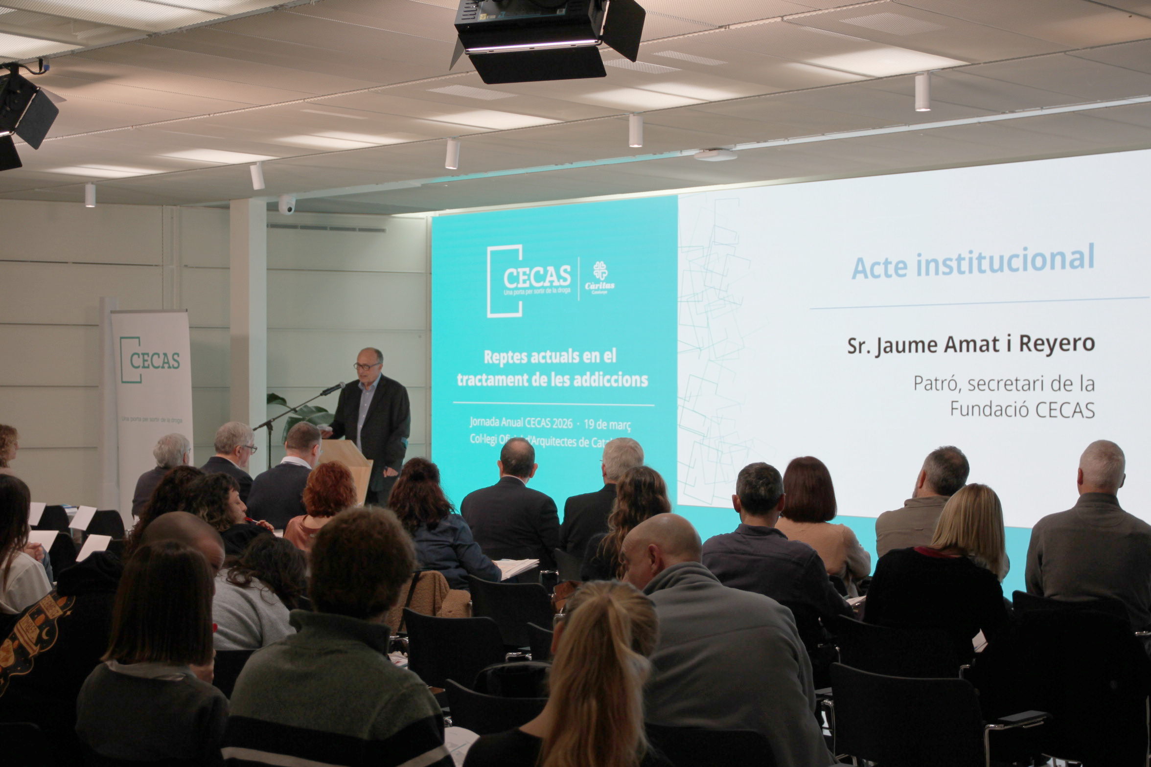 En 2026 se cumplen treinta y cinco años de la constitución del Centro Catalán de Solidaridad, que se formalizó el once de marzo de 1991, y para conmemorarlo hemos dedicado la jornada anual de CECAS a reflexionar sobre los retos actuales en el tratamiento de las drogodependencias. Tres expertos especialistas del sector han compartido con los asistentes sus impresiones y aprendizajes, a partir de su experiencia profesional y trayectoria académica. La Jornada se ha celebrado el 19 de marzo en Barcelona, en dos partes: por la mañana en la sede del Colegio de Arquitectos de Cataluña y por la tarde en el Palau de la Balmesiana.